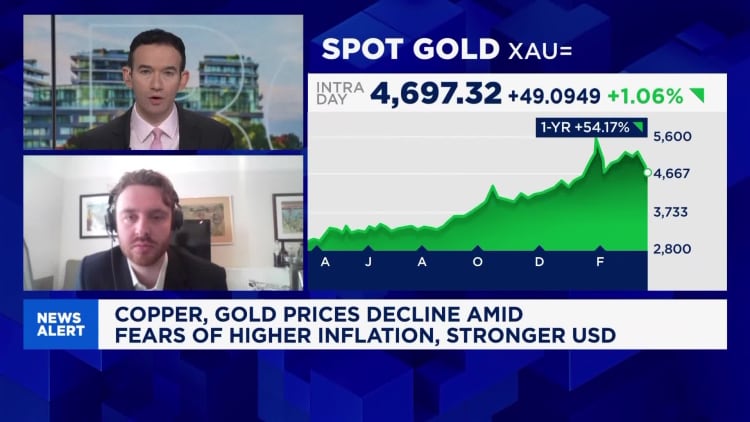 While Boockvar believes the war must end for industrial metals prices to stabilize, he said gold could likely recover as the focus returns to countries’ rising debts and deficits, which gold typically fares well against as a “devaluation trade.” He added that these deficits may only get worse because of military spending on the war.