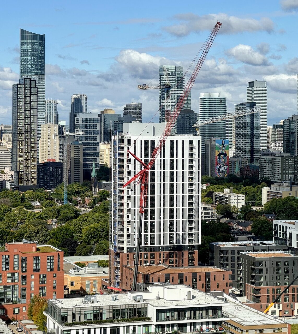 View northwest to Luffing Jib Crane and Mobile Hydraulic Crane, image of Urbantoronto Forum that participates in Skycandy