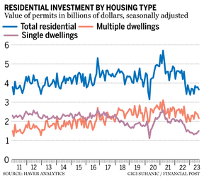 Since 2015, when the Liberals took over in Ottawa, housing investment has been largely stagnant, save for an unexpected boom-and-bust cycle related to COVID-19. The value of single-family home permits has been falling since March 2021. At the same time, property prices and rents have risen to such an extent that they are no longer affordable for low-income households.